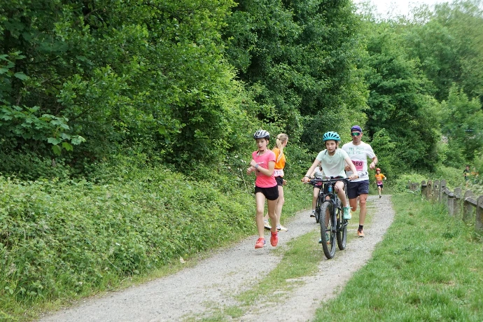 Un run-bike est une épreuve par équipe composée d’un vététiste et d’un joggeur pouvant se relayer.